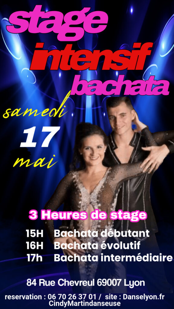 Venez vivre une expérience unique avec les stages intensifs de danse proposés par Cindy, danseuse et professeure de renom dans la région lyonnaise. Que vous soyez débutant ou confirmé, ces stages vous permettent de progresser rapidement tout en vous amusant dans une ambiance conviviale et dynamique !